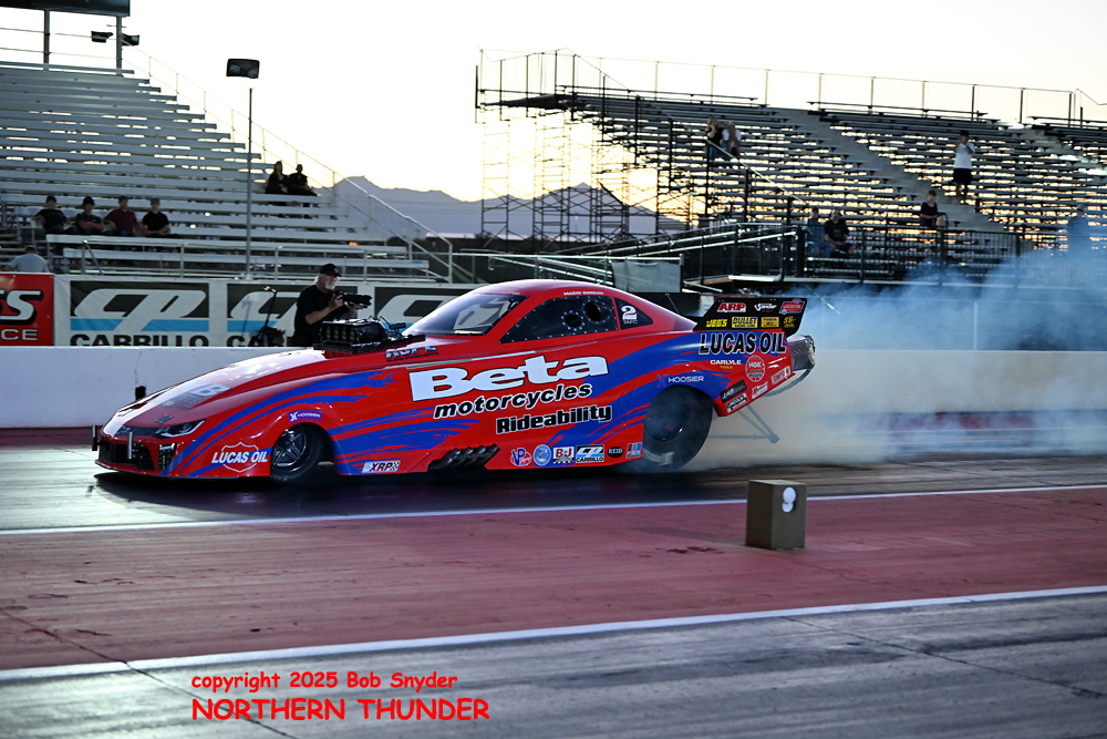 A quick look at the points totals for the two contenders will make it clear how steep a mountain Brian Hough has to climb to overtake Sean Bellemeur for the championship. Hough has to win both Vegas and Pomona, while Bellemeur would have to lose in the first or second round at Las Vegas to keep that incredibly thin possibility alive. Frankly, it's just not going to happen, as the five-time champions in the category, the "Killer B's", just don't make very many - if any at all - mistakes in these situations. And despite many years of trying, it appears that Hough is destined to put another number 2 on his car for the 2026 season.