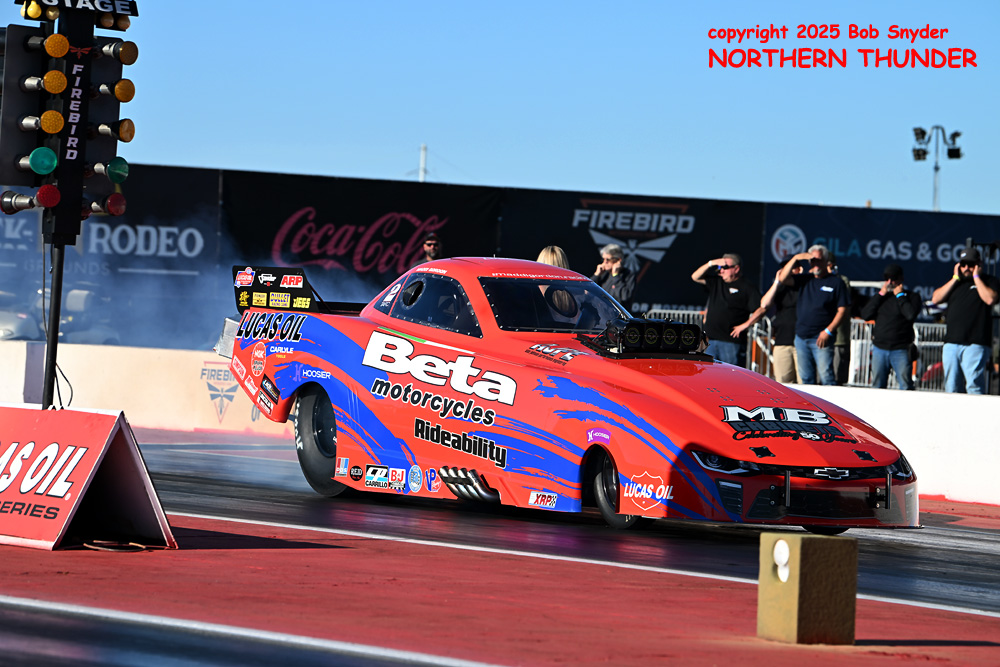 extremely well deserved victory in his debut event of the 2025 season. It was also his first national event win since the 1992 NHRA Reading Nationals. Tuned by fellow Canadian, Les Davenport,