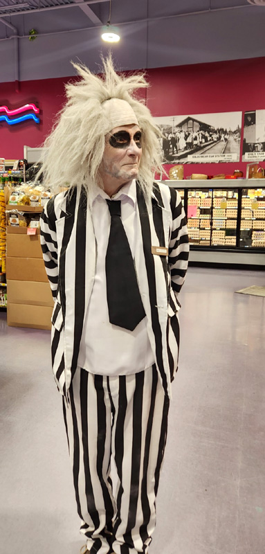 The photo on the left was last year's costume (Beetlejuice), and on the right, it's the Ringmaster from the Across The Universe movie, as portrayed by Eddie Izzard, but with Bob in costume.