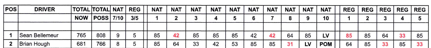 Hough has both Las Vegas and Pomona on his national event schedule, while Bellemeur has only the Vegas race left to improve his points total. After back-to-back wins at Reading and Charlotte, Hough came into Texas on a heater, but went stone cold at the worst possible time. However, he can pick up enough points to overtake Bellemeur.... IF .... he can win both national events, and take out the one regional event he has left to claim. But it could all become academic if Bellemeur can take win at the Nevada Nationals, which would clinch him the title.