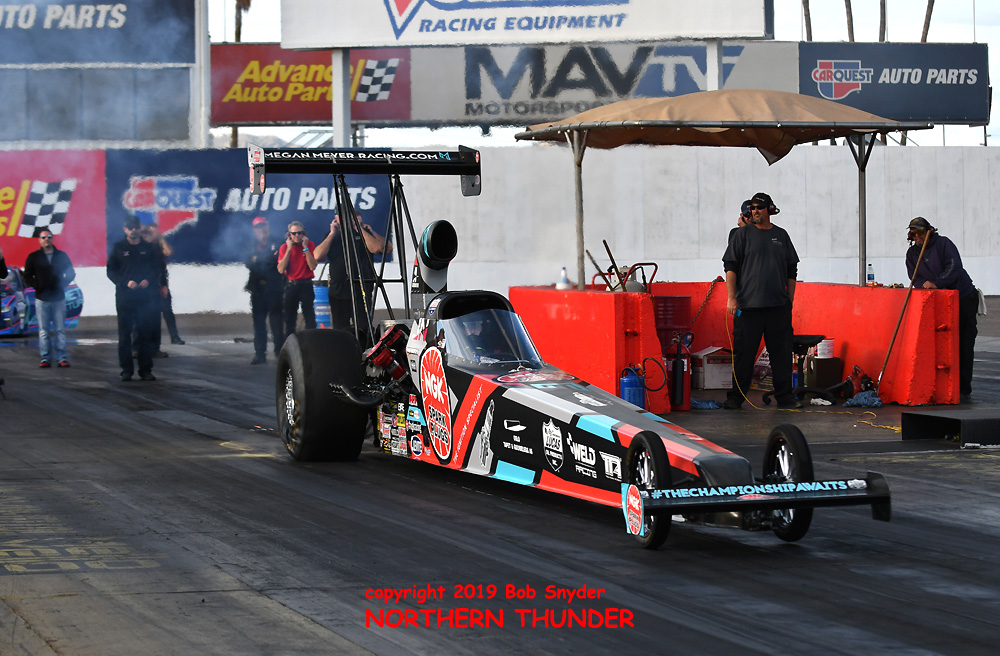 At the end of the day, almost everyone in attendance packed up and pointed their rigs west towards Pomona for the official start of the 2019 NHRA Mello Yello Drag Racing season, the Lucas Oil Winternationals. As I write this, the first day of qualifying for Sportsman cars is well underway, with the Top Alcohol cars scheduled to come out late this afternoon. The big noise, big show cars are on tap for two qualifying sessions tomorrow afternoon and Saturday, then final eliminations for all categories on Sunday.... Sunday.... Sunday. (With another nod to the "waay-back" machine).