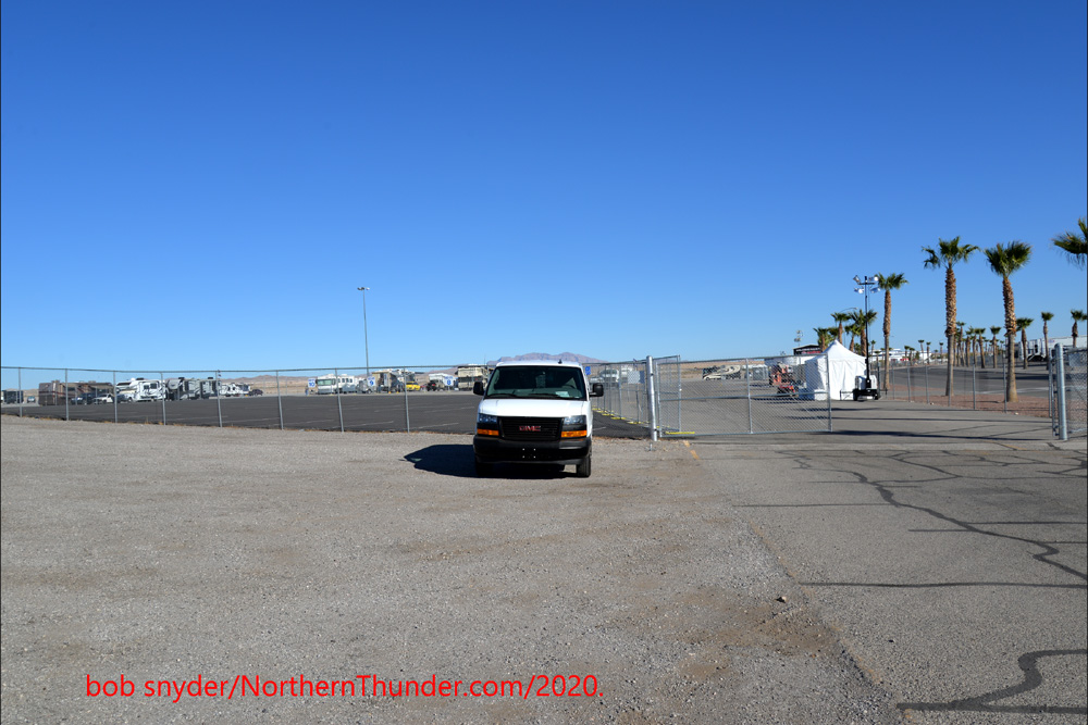 The early bird gets the best parking spot as our intrepid lensman, BIG Bob Snyder slides his road warrior van into an otherwise empty media parking lot.