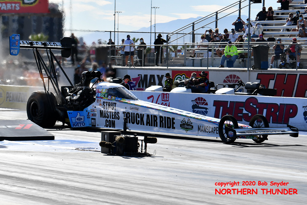Due to an uncooperative (ie. crap) wi-fi at Motel "5.9", our photographer was only able to transmit two pictures from yesterday's Top Alcohol qualifying at Las Vegas. Thankfully they were images of the top cars in each class. Much more to come later today though and throughout the weekend. Stay tuned!