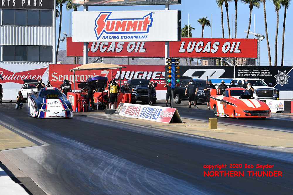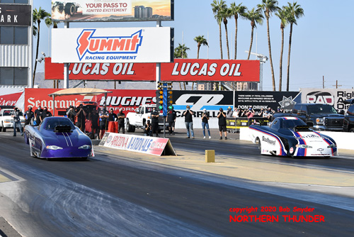 (RIGHT) (left lane) Shawn Cowie 5.368 - 269.46 (right lane) Mike Austin 18.864 - 37.83
