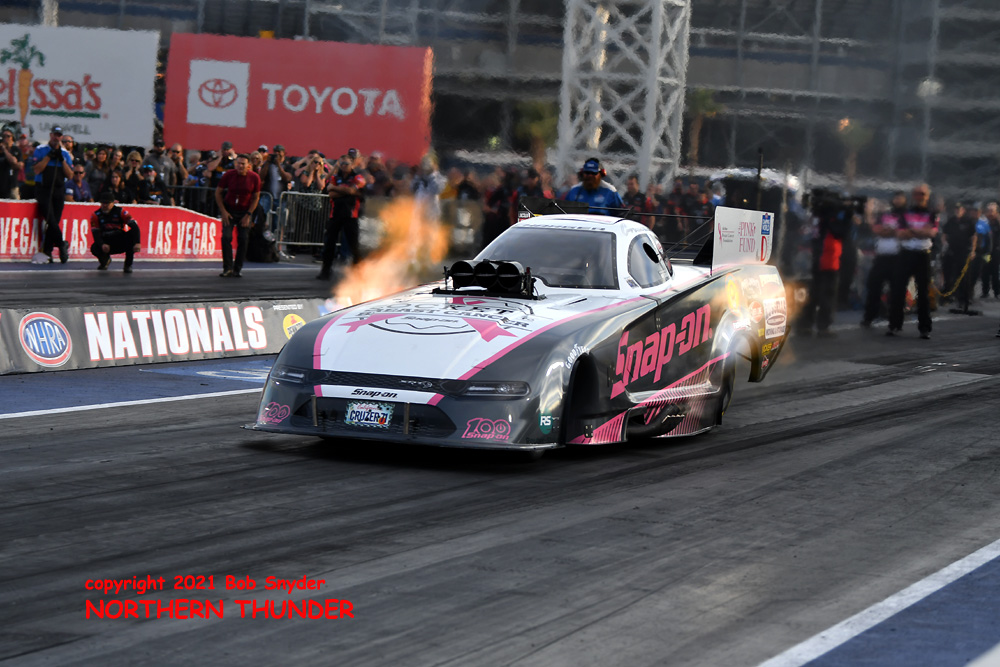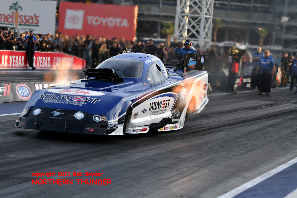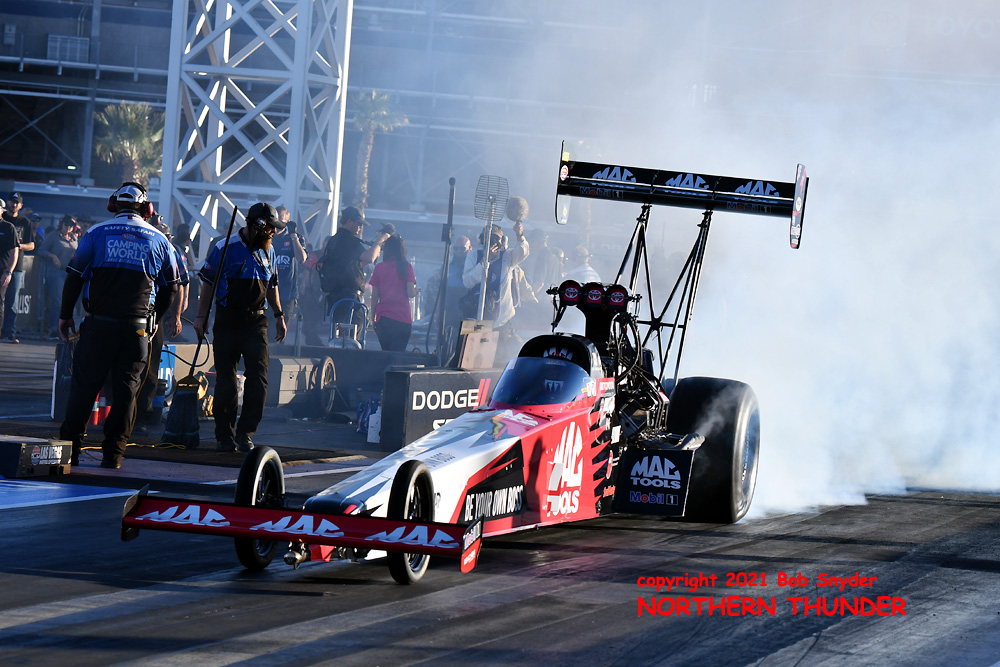 Despite her dominance in qualifying, Force had only advanced to one final round in the first five races of the countdown, losing to Josh Hart in that event, while Torrence had been in three straight finals, including one win, leading up to Las Vegas. Looking at his 2021 season record, Steve Torrence's nine wins and three runnerups made Force's one win and four runnerups look rather pale by comparison. Race day consistency and reaction times have been the key to Torrence's success and likewise, the key to Brittany's relative lack of success. Could today be the event where she and her crew could rise to the occasion and close the points gap enough to have a chance for the championship at Pomona?