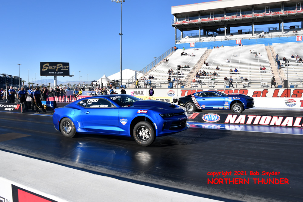 (LEFT) After six DNQ's out of seven appearances in the 2021 season, Richie Stevens Jr. was hoping for some much improved performance at The Strip. His initial effort, running alongside Prusiensky was decent at 6.772 - 203.52.