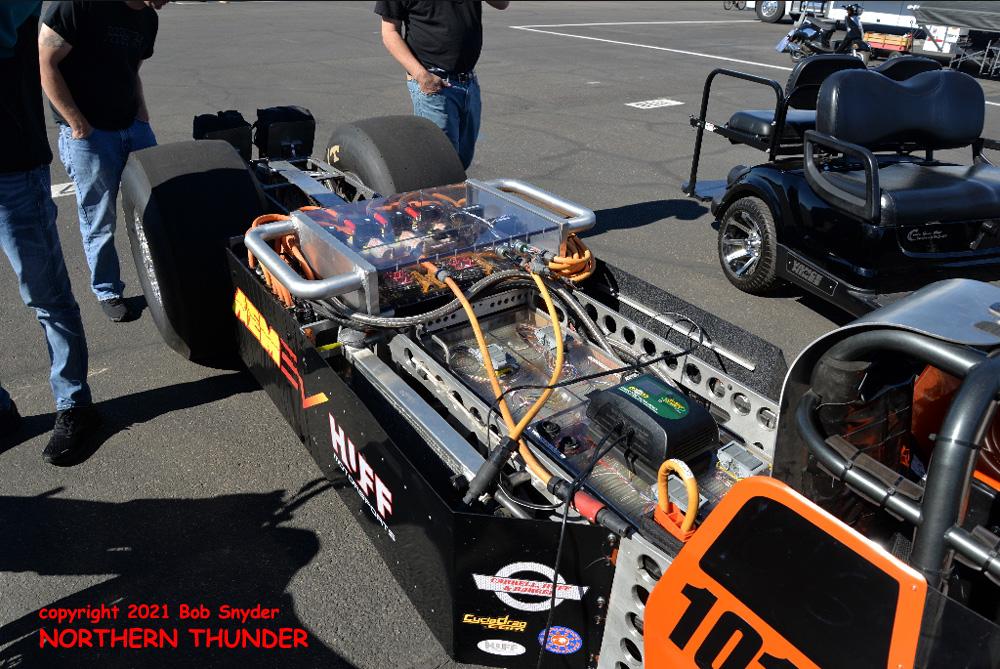 Is this really the future of drag racing? Hopefully not, BUT there is a place for electric vehicles in the sport and Steve Huff's 200-mph "Current Technology" dragster has proven the point that they can go fast. NOTE: "Big Daddy" Don Garlits attempted to be the first to crack the 200 barrier, but the battery power just wasn't there when he stopped working on his electric digger.