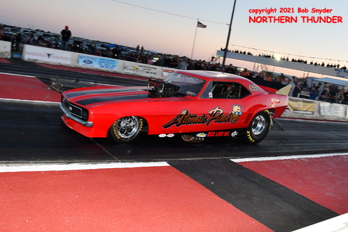 Closing out the first session was Nick Poloson (right), as he topped the charts, with a very good (for the conditions) 4.159 - 170.83 in the "Bucket List" car to take provisional pole going into the evening session. As the crews got busy in the pits prepping for the second session, the ever-threatening storm clouds gathered over the track