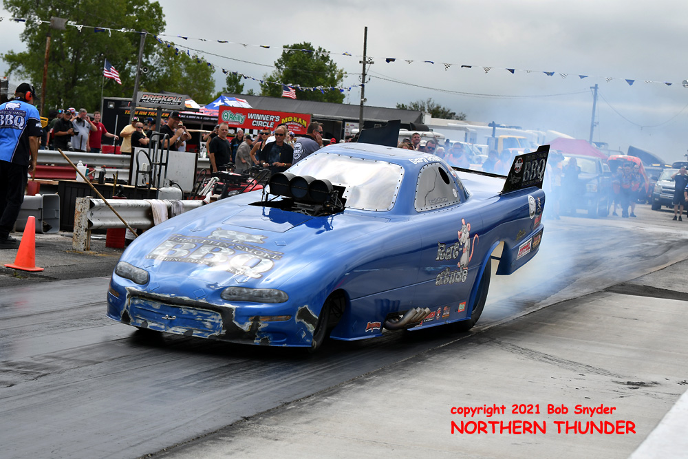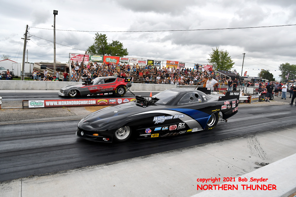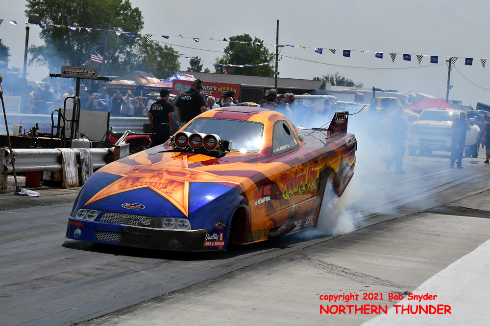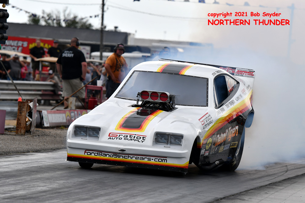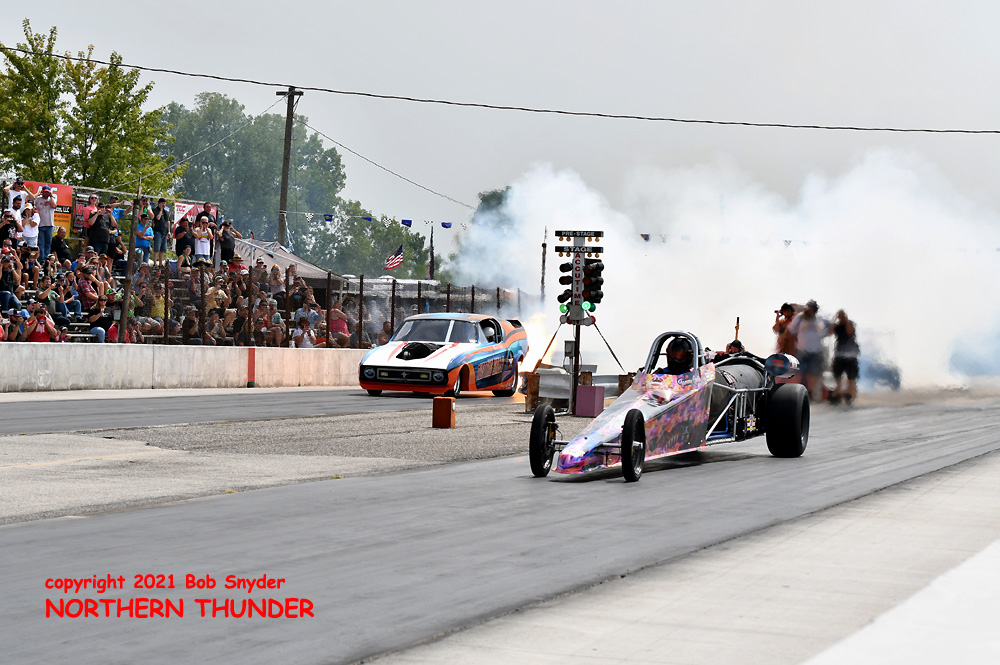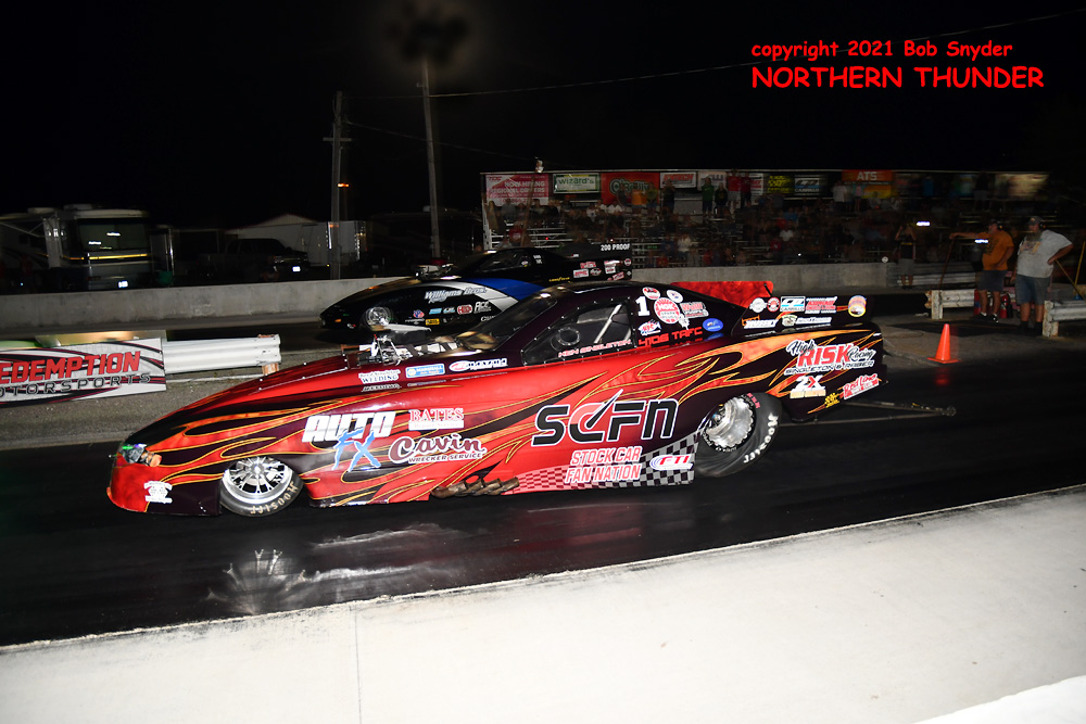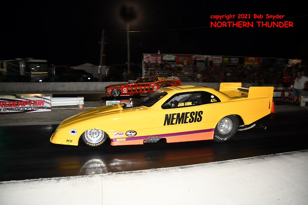 Continuing her strong run of success in an amazing rookie year on the FCC circuit, Jade Cook (near lane) in her aptly named "Nemesis" took the win over veteran Chris Schneider (far lane) in the Mustang-bodied "Brutus" entry. We haven't seen any of the round sheets yet but Cook's second win of the season, along with two runner-ups may have moved her all the way up the ladder to the #3 position, from the #7 spot she occupied before this event