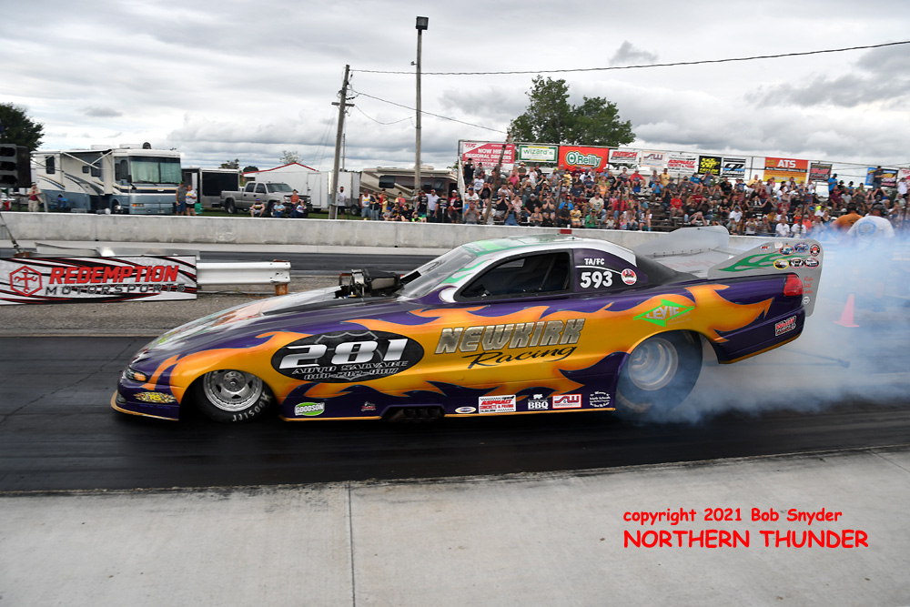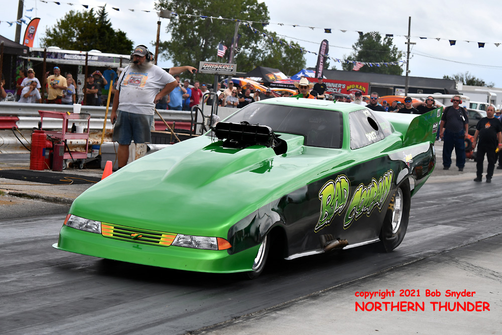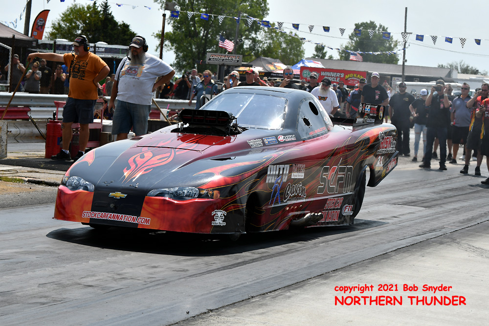 The FUNNY CAR CHAOS points system has a "drop" race system, whereby a racer can waive their lowest points earning race from their season total before the final points standings are determined. If a racer doesn't attend a race, that event becomes their drop race, which helps lower budget racers who can't afford to travel to every race, especially ones far from home. Only one racer in the Top Ten has skipped an event this year, that being Jade Cook and she is currently looking good for at least a Top Five finish. With only the World Finals remaining on the calendar, at San Antonio's Alamo City Motorplex on October 1-2, it's going to be quite a battle for the final placings in the season's points standings.