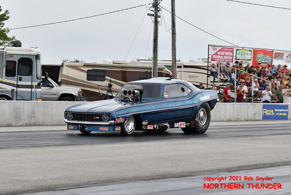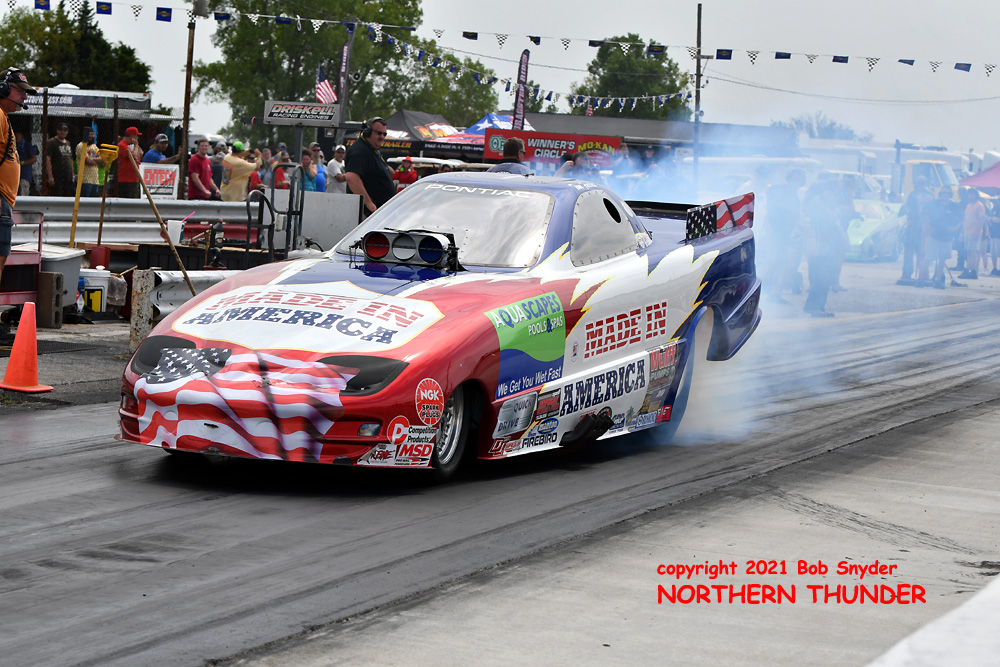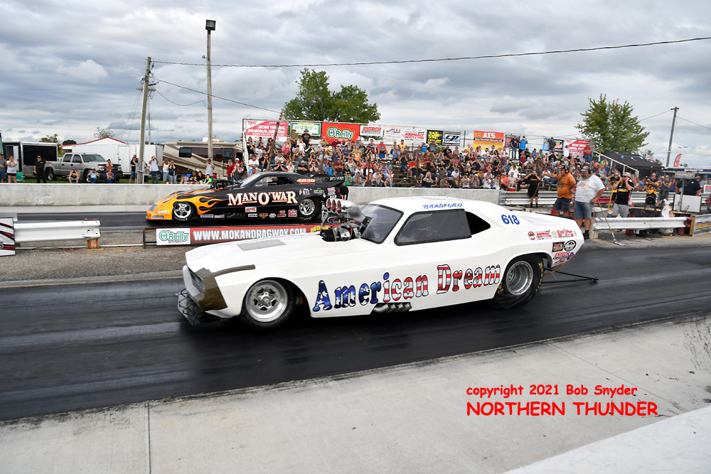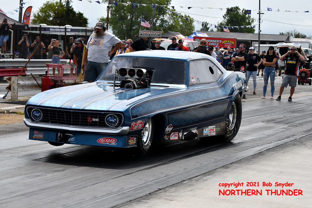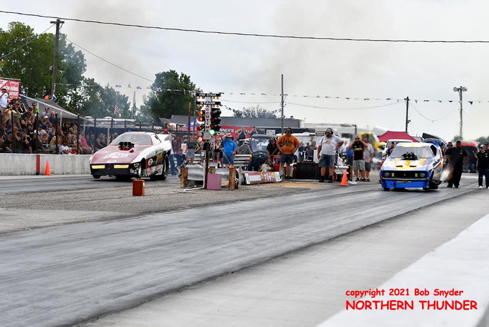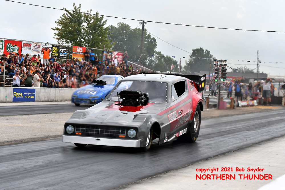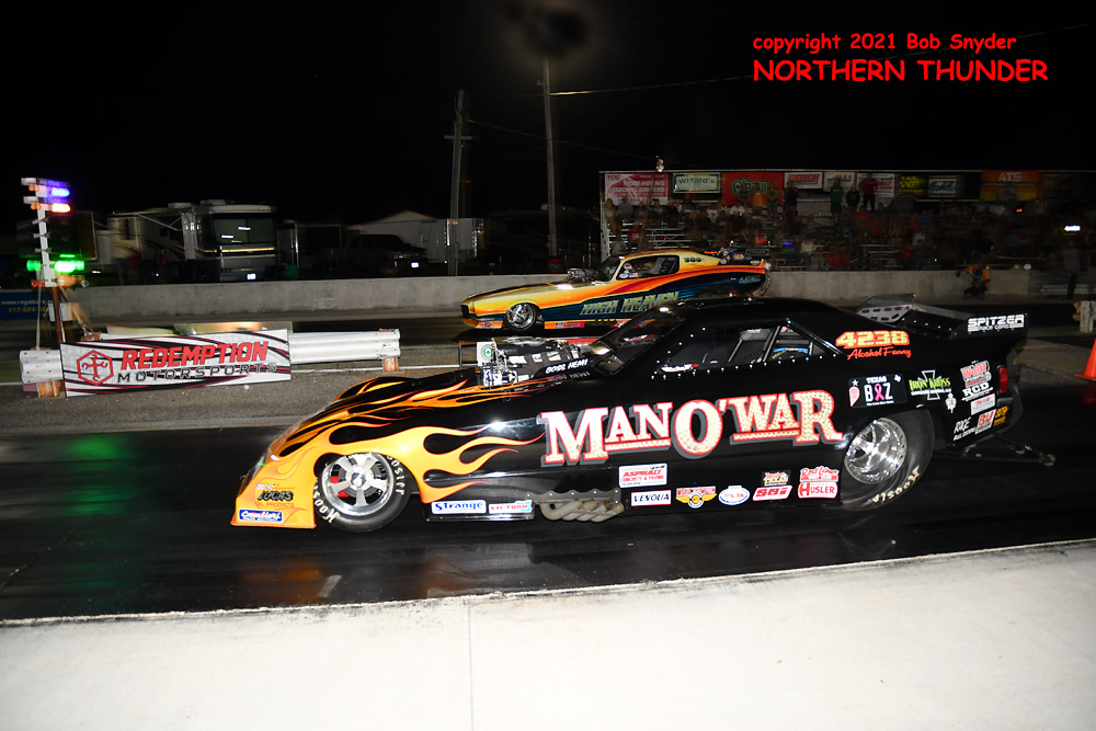 Finally breaking through for his first win (and first final round) of the season, Shayne Lawson (near lane) in the iconic "Man O' War" Mustang, took the win over the high-country Camaro of the Jackson family, the "High Heaven", wheeled by Keith Jackson. Lawson has most likely moved up two spots in the standings, from his #10 position coming into the weekend
