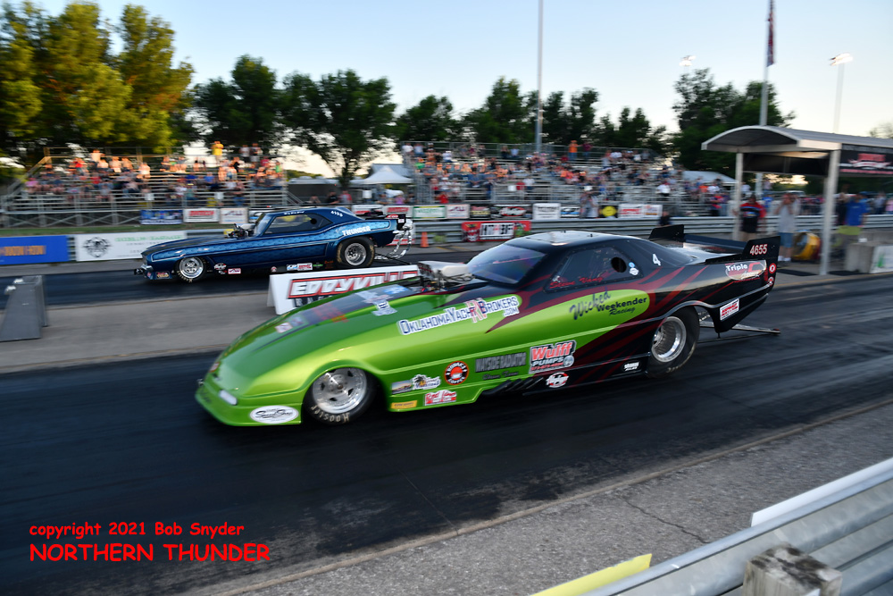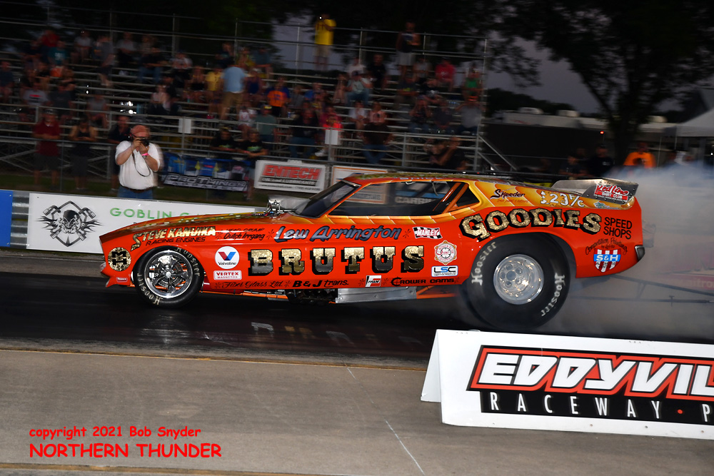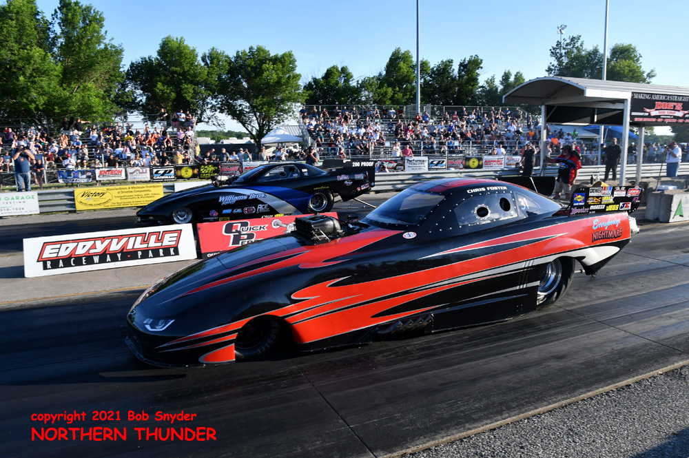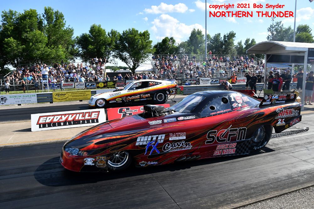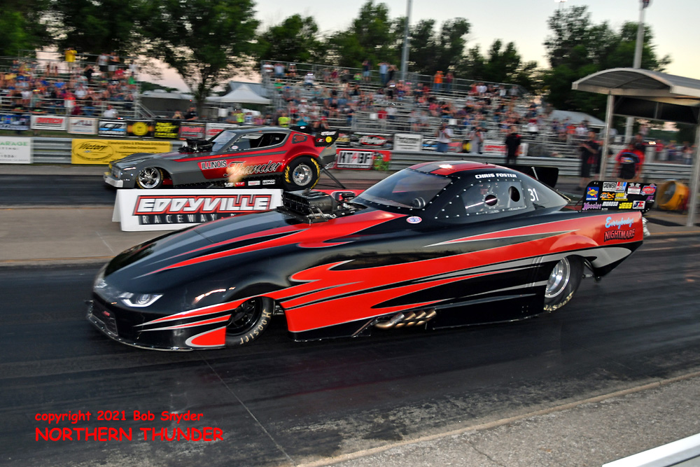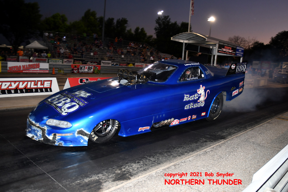 It's the fourth installment of the eight race schedule for the FUNNY CAR CHAOS CHAMPIONSHIP TOUR (2021), this week at Eddyville Raceway Park (Oskaloosa, IA) with our southwestern correspondent and ace photographer BIG Bob Snyder on hand to provide us with news and photos of the action. Two qualifying sessions were run last night, with the second round run under the lights and there were some great performances from the 27 cars that made it to the starting line. We'll start with the first session photos, then fill in the details and get the second session posted later today.