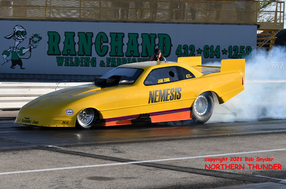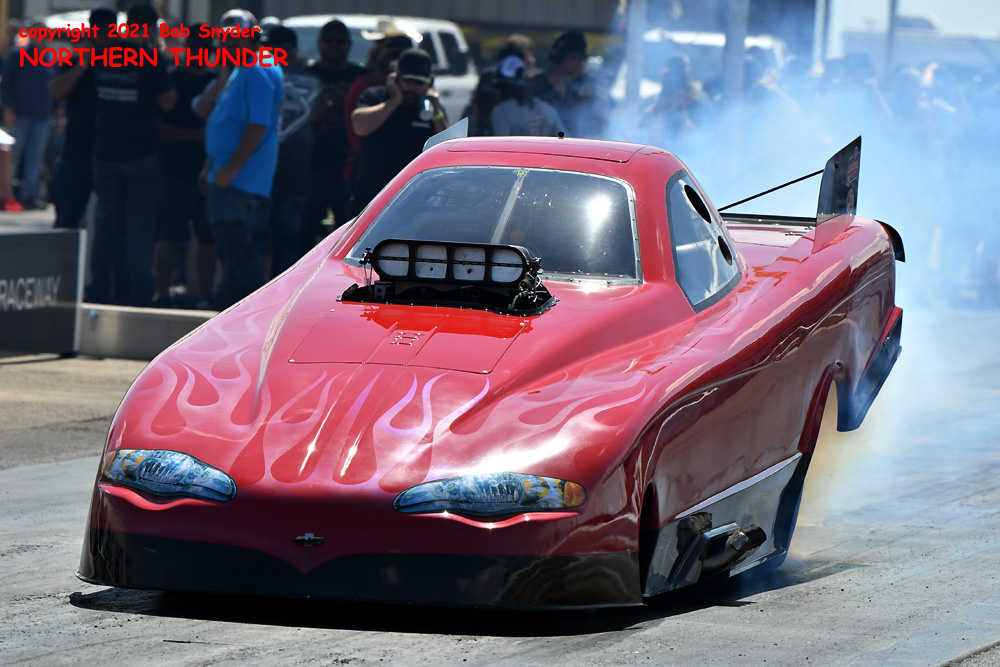 (RIGHT Burning out to start his weekend, Nick Johnson in the Reinart & Johnson "Prairie Fire" entry saw a 4.596 - 149.20 come up on the scoreboards that was only good enough for the #18 spot on the qualifying list