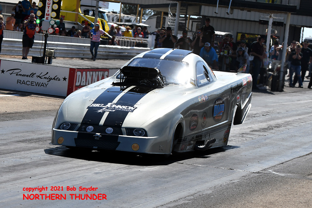 (LEFT After a miserable Friday, with a 5.014 - 97.95 best, Bill Bernard cranked up the volume in the last session with a better 4.450 - 126.09 that showed there was a lot left in the tank, judging by the early shutoff speed