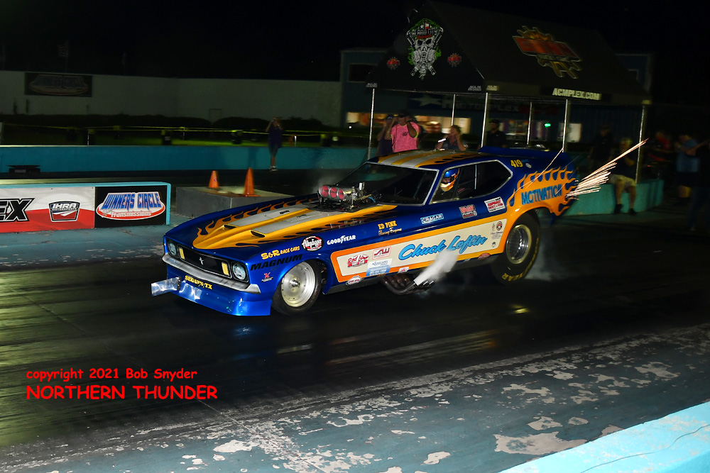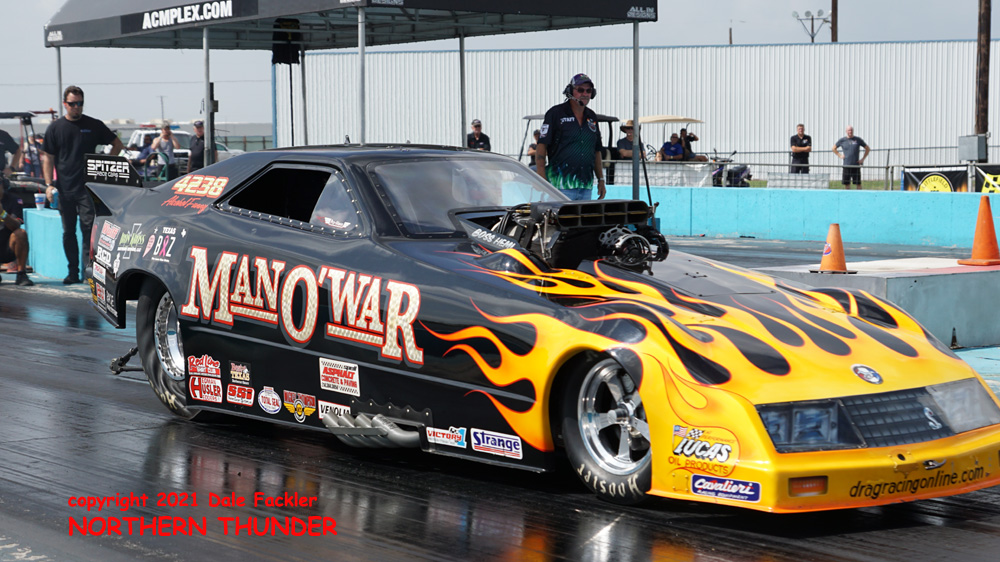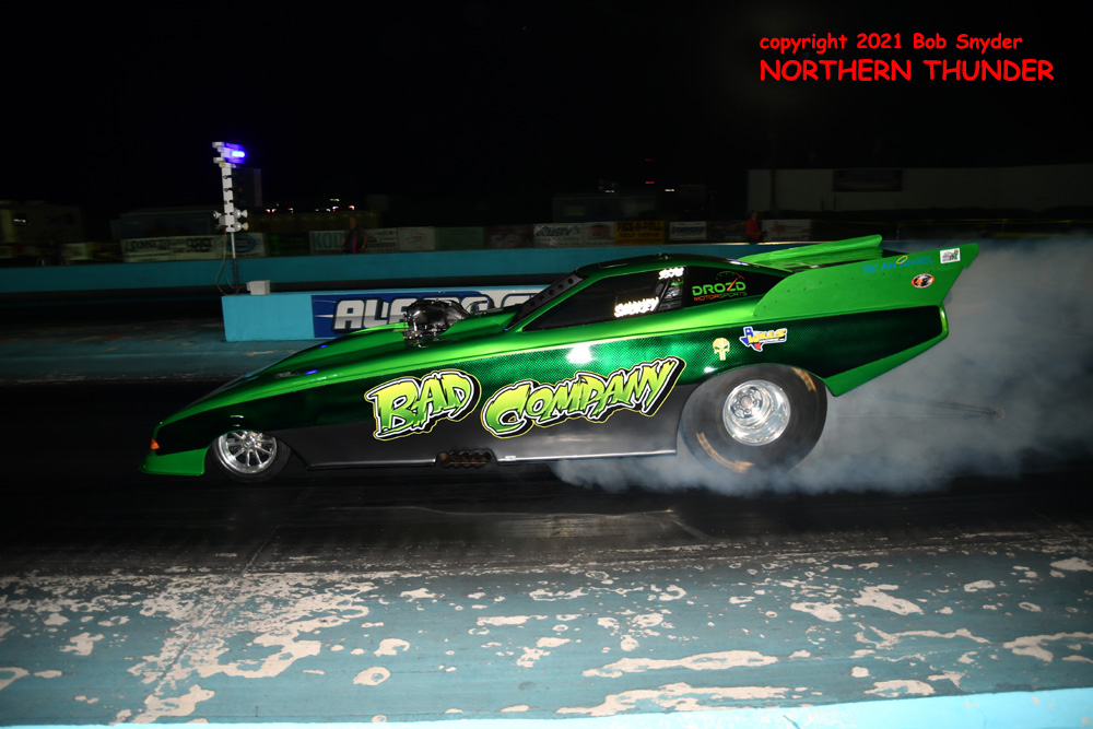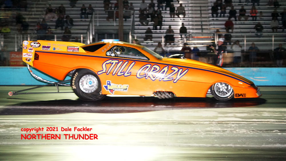 Qualifying ran rather late on Friday night at Alamo Motorplex, but the FUNNY CAR CHAOS crew got in the first two (of three) qualifying sessions. Thirty cars made at least one attempt and seven of them dipped into the 3-second zone on the 1/8-th mile surface. Leading the pack was a surprisingly strong team that has only run at the season opener at the Texas Motorplex. Following close behind them on Friday's list were the top two runners this season, with some of the usually strong cars well back of their times.