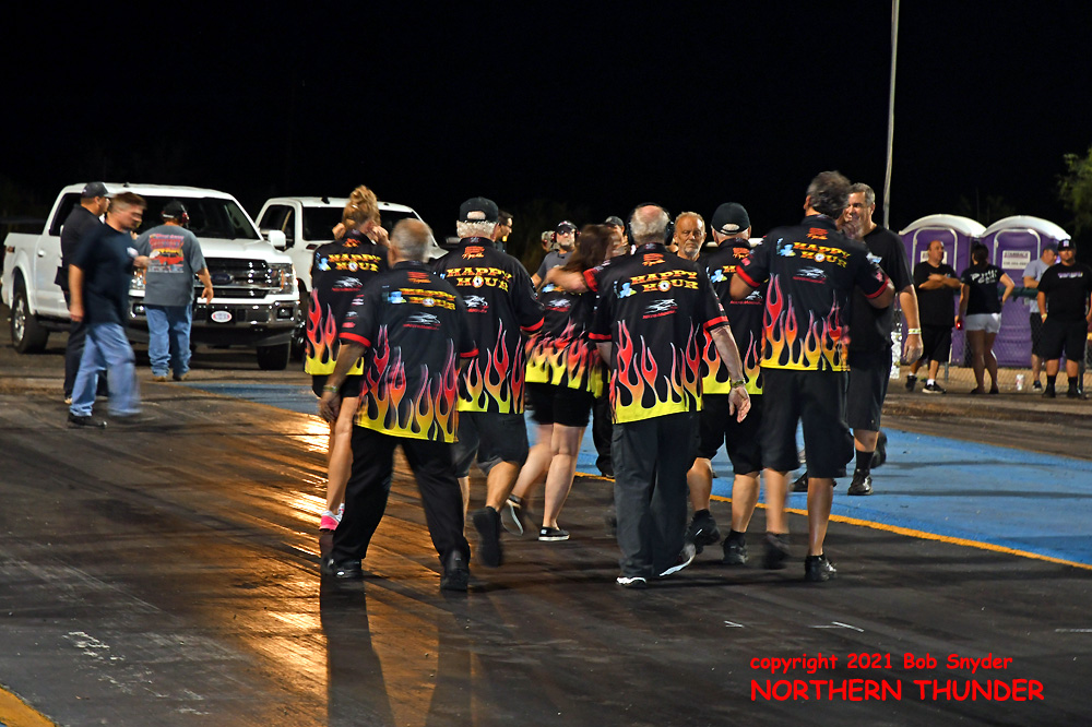 (RIGHT) Obviously pleased with the result, Boychuk's "Happy Hour" team celebrated on the starting line.