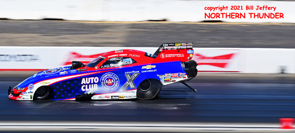 (RIGHT) Running by himself after the Boss shut off, Robert Hight just missed - by one thousandth of a second - taking the top spot on the sheet with a very strong 3.962 - 327.11 pass that also took Top Speed honours for the session.