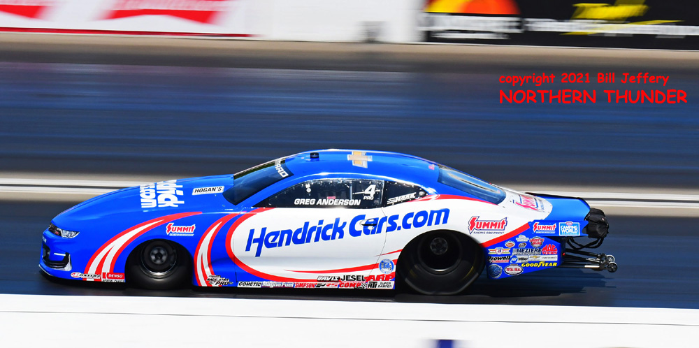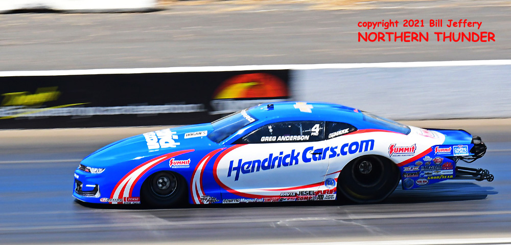 (RIGHT) Closing the round was Greg Anderson with the second quickest pass of the round (.001 slower than Coughlin) at 6.648 - 207.05 for another round win, over Chris McGaha (not shown) who trailed with a 6.704 - 207.11 clocking. Anderson's run earned him lane choice over Koretsky in the semfinals.