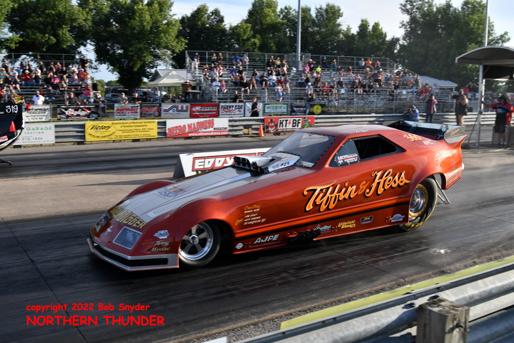 With all the top ten cars in the points standings in attendance, plus a bunch of other series regulars, the 33 racers that made the tow to the event were ready to put on a show for the Iowa fans. As a bonus, the Funny Car Chaos managers added a "D' Field shootout, in addition to the three 8-car fields already scheduled. Our coverage starts with the first round of qualifying early on the Friday evening.