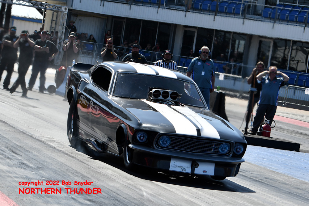 (LEFT) The Mustang-bodied "Man O' War" of Shayne Lawson started off on the right foot with a solid 4.208 - 160.92 in the blown alcohol entry.