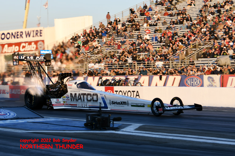 (RIGHT) The four-time defending TF champion, Steve Torrence was still mathematically in the hunt and sitting #2 on the ladder coming into the session, but slipped back a little in performance with a "merely" great 3.704 - 331.61 run.