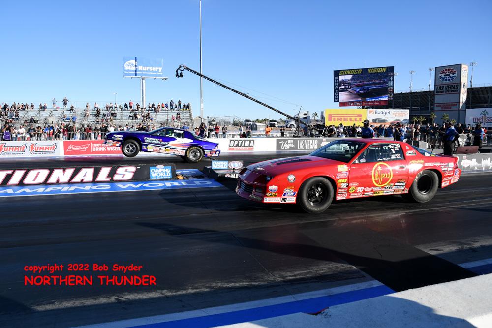(LEFT) The Bucky Austin-owned and tuned "Northwest Hitter" Camaro, with Bobby Cottrell at the wheel, pounded out another consistent low 4.70 pass, with a 4.744 - 236.46 lighting up the scoreboards and the win light.