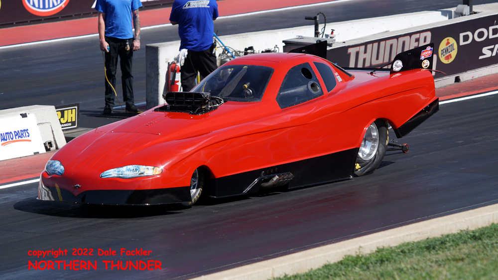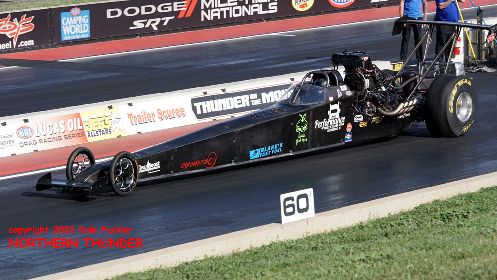 Driving one of the hardest running Top Alcohol cars in the country, Nebraska's James Stevens tested his high altitude tuneup before qualifying started.